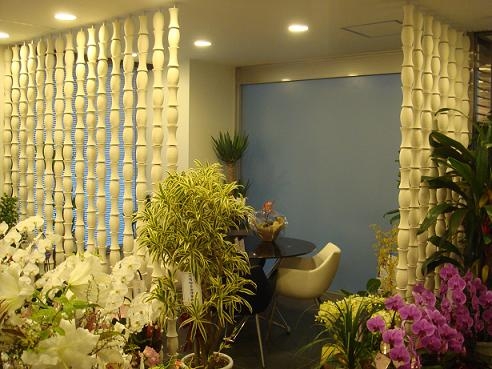 正面壁も、カウンター側面も、簡易応接目隠しも、全部陶器です。